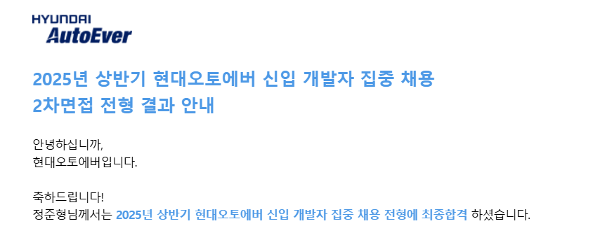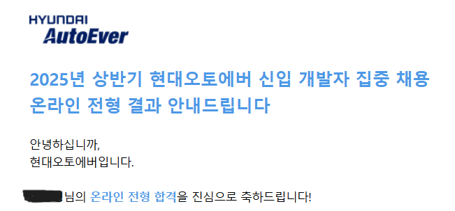 본론으로 들어가자면 현대오토에버에 최종 합격을 하였다...!!! 현대오토에버를 준비하면 할 수록 현대오토에버에 대한 사랑이 커져갔는데, 입사 후에도 이 사랑을 바탕으로 나의 역량을 100%, 200% 보여주며 기여하고 싶다!